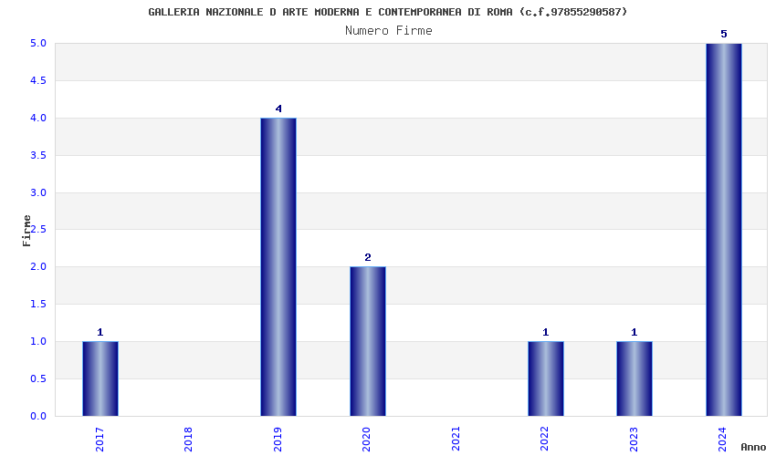 | Anno | Firme | Importi | Media | Naz. | Reg. | Prov. | Comu. |