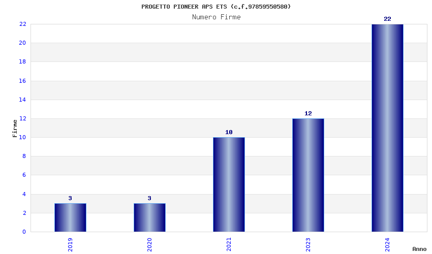 | Anno | Firme | Importi | Media | Naz. | Reg. | Prov. | Comu. |