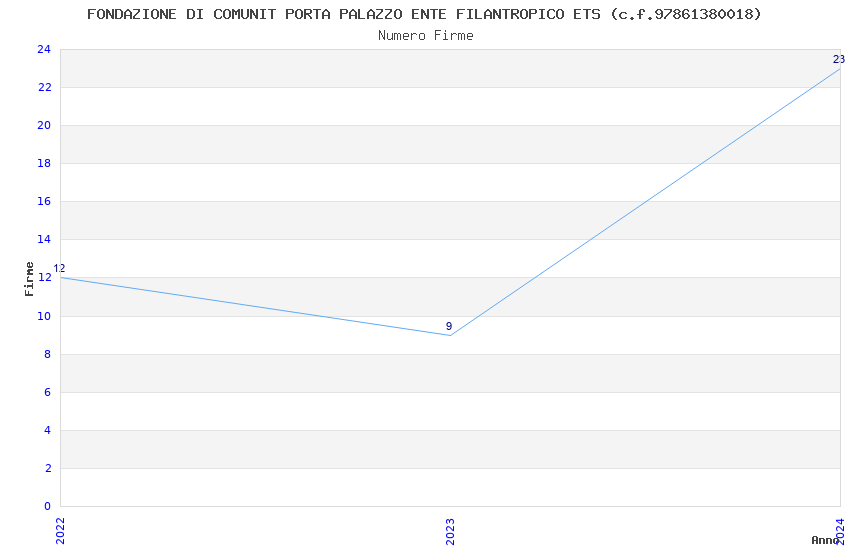 | Anno | Firme | Importi | Media | Naz. | Reg. | Prov. | Comu. |