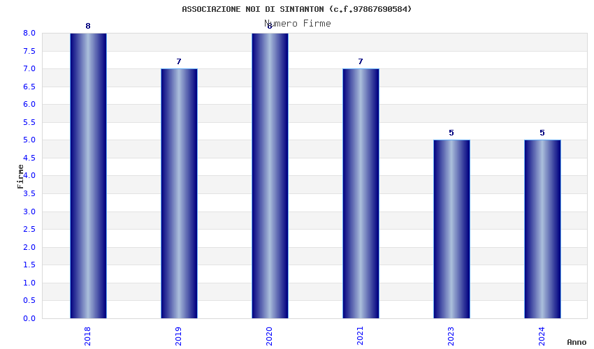 | Anno | Firme | Importi | Media | Naz. | Reg. | Prov. | Comu. |