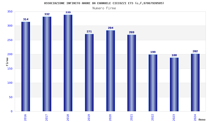 | Anno | Firme | Importi | Media | Naz. | Reg. | Prov. | Comu. |