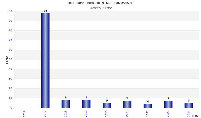| Anno | Firme | Importi | Media | Naz. | Reg. | Prov. | Comu. |