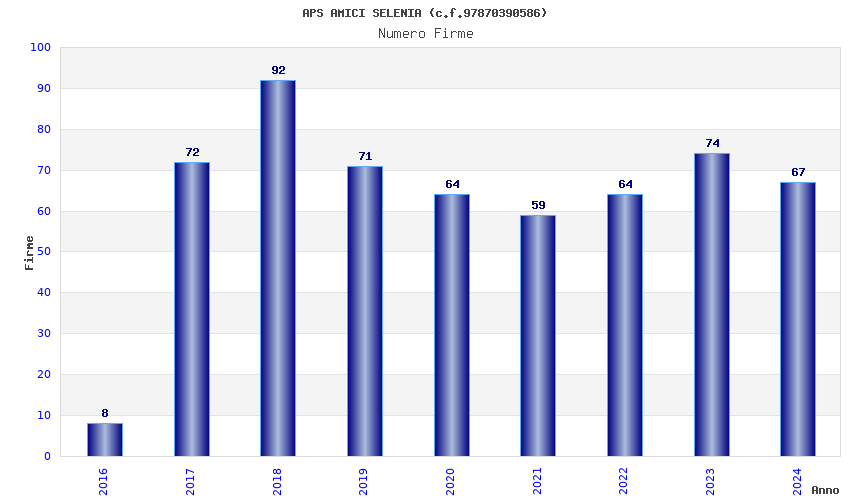 | Anno | Firme | Importi | Media | Naz. | Reg. | Prov. | Comu. |
