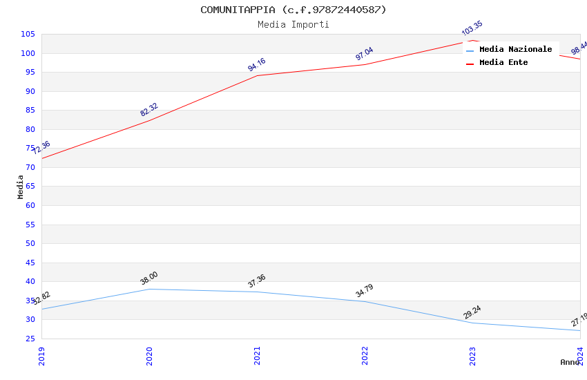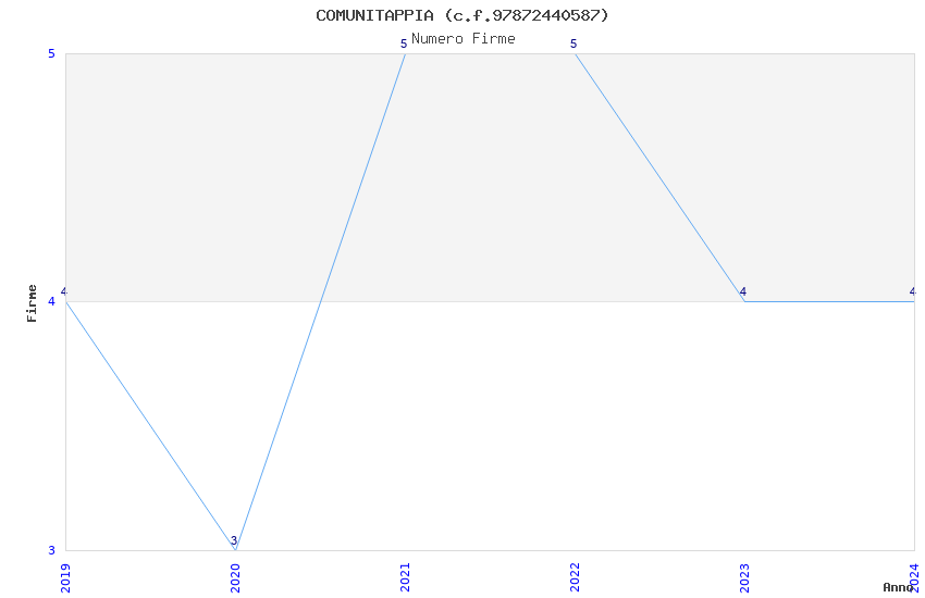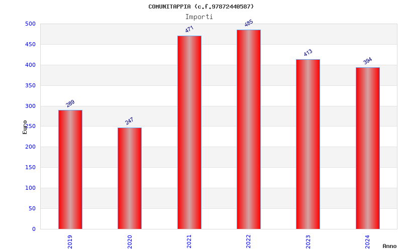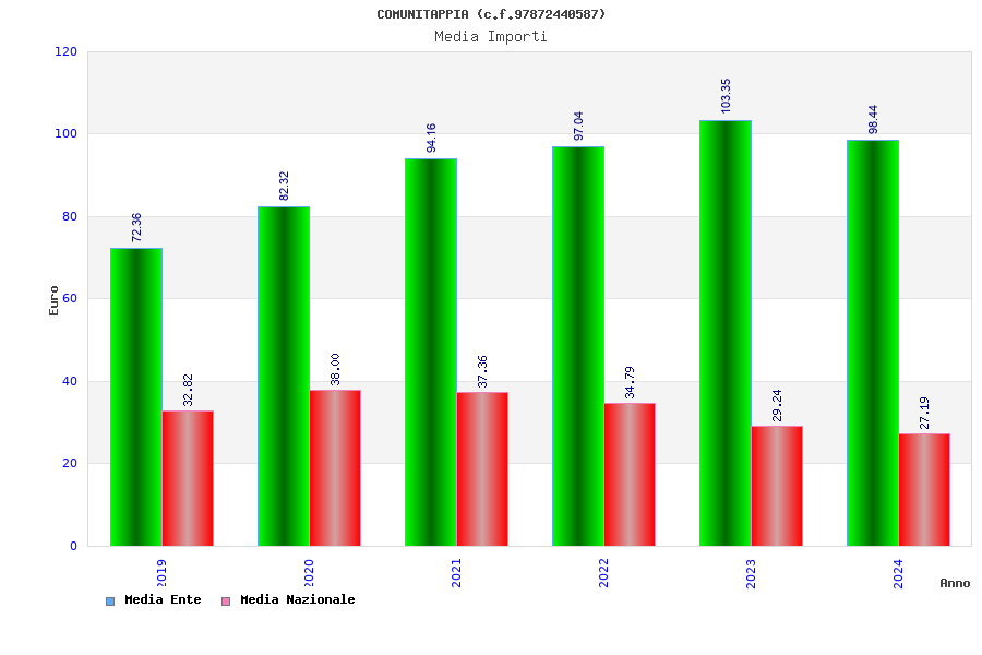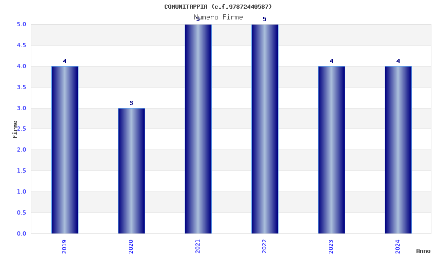 | Anno | Firme | Importi | Media | Naz. | Reg. | Prov. | Comu. |