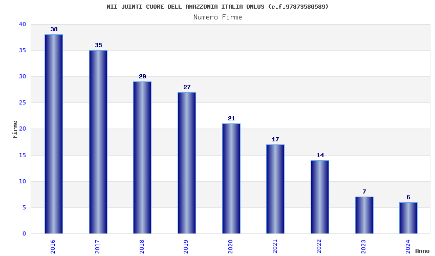 | Anno | Firme | Importi | Media | Naz. | Reg. | Prov. | Comu. |