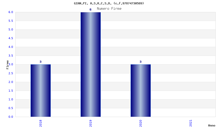 | Anno | Firme | Importi | Media | Naz. | Reg. | Prov. | Comu. |
