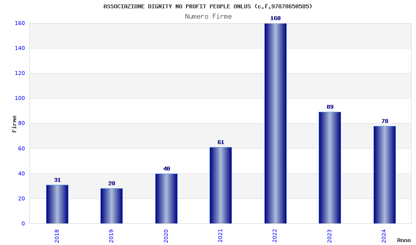 | Anno | Firme | Importi | Media | Naz. | Reg. | Prov. | Comu. |