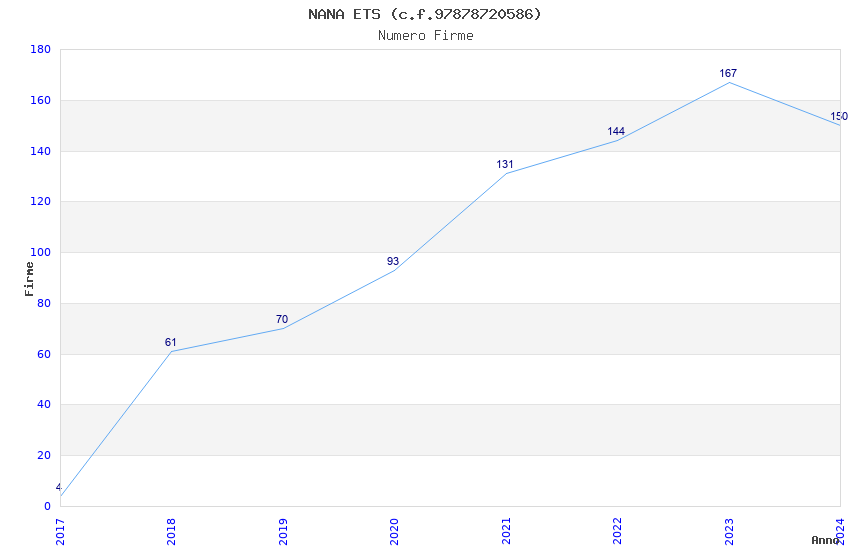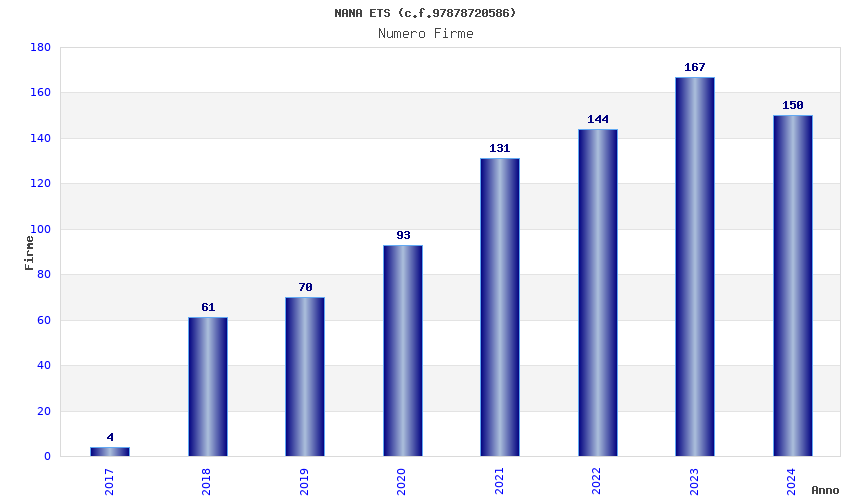 | Anno | Firme | Importi | Media | Naz. | Reg. | Prov. | Comu. |