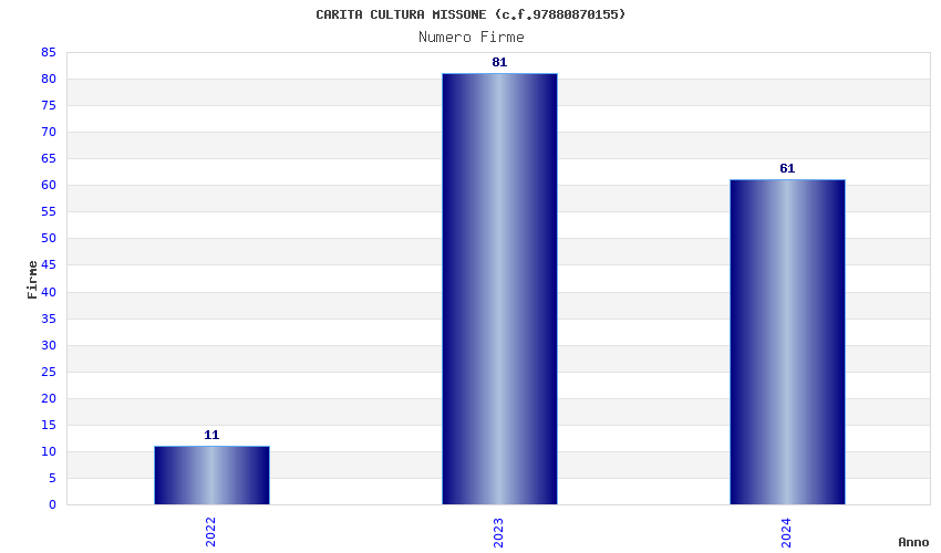 | Anno | Firme | Importi | Media | Naz. | Reg. | Prov. | Comu. |
