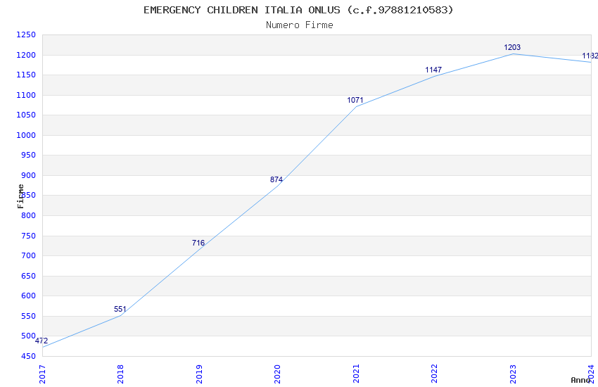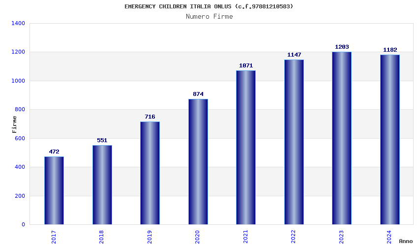 | Anno | Firme | Importi | Media | Naz. | Reg. | Prov. | Comu. |
