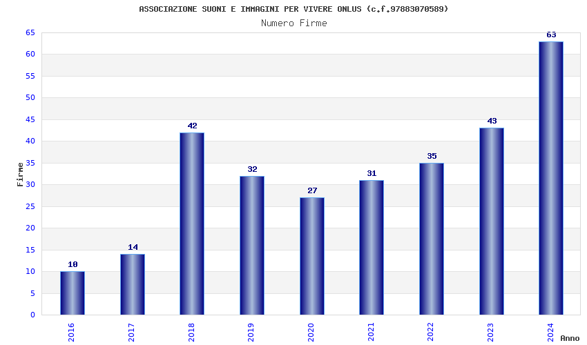 | Anno | Firme | Importi | Media | Naz. | Reg. | Prov. | Comu. |