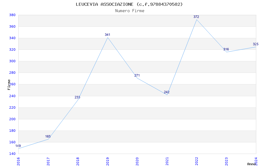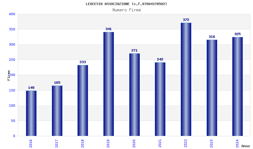 | Anno | Firme | Importi | Media | Naz. | Reg. | Prov. | Comu. |