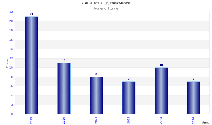 | Anno | Firme | Importi | Media | Naz. | Reg. | Prov. | Comu. |