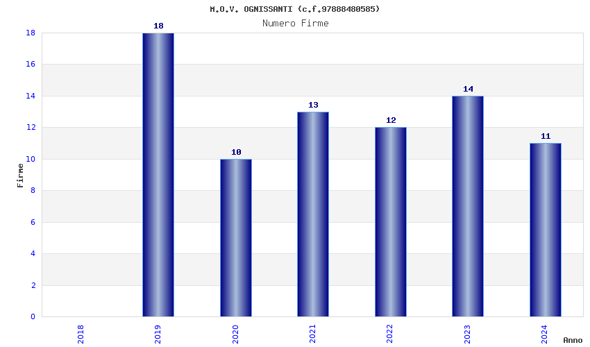 | Anno | Firme | Importi | Media | Naz. | Reg. | Prov. | Comu. |
