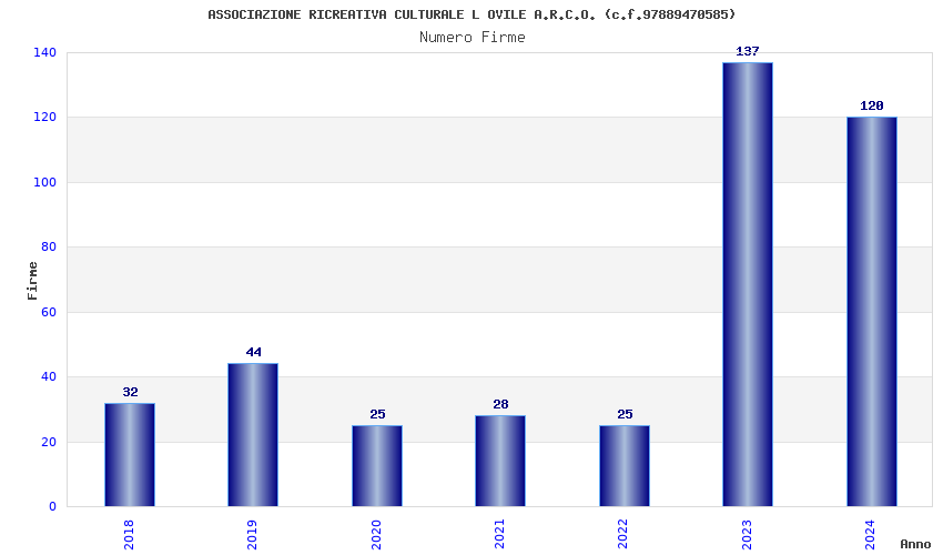 | Anno | Firme | Importi | Media | Naz. | Reg. | Prov. | Comu. |