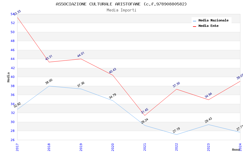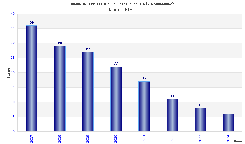 | Anno | Firme | Importi | Media | Naz. | Reg. | Prov. | Comu. |