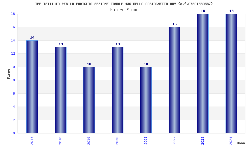 | Anno | Firme | Importi | Media | Naz. | Reg. | Prov. | Comu. |