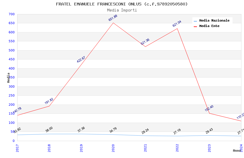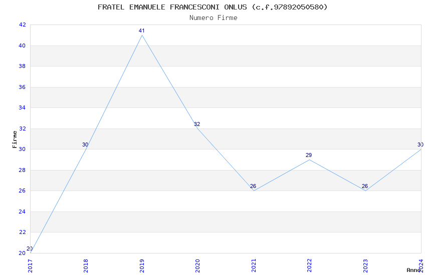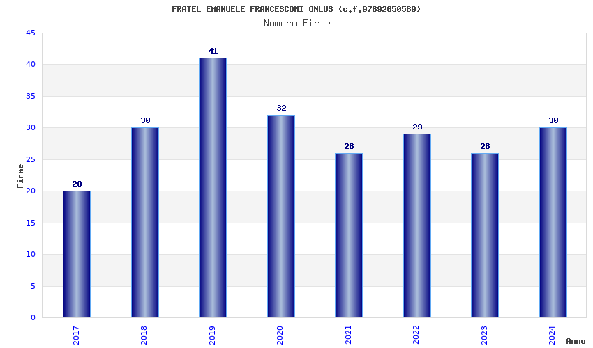 | Anno | Firme | Importi | Media | Naz. | Reg. | Prov. | Comu. |