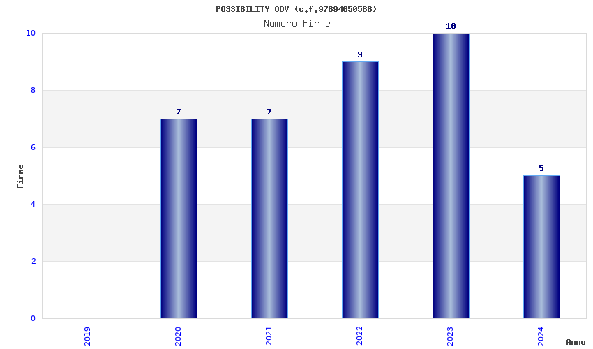 | Anno | Firme | Importi | Media | Naz. | Reg. | Prov. | Comu. |