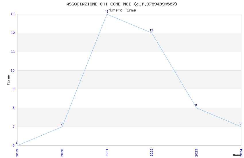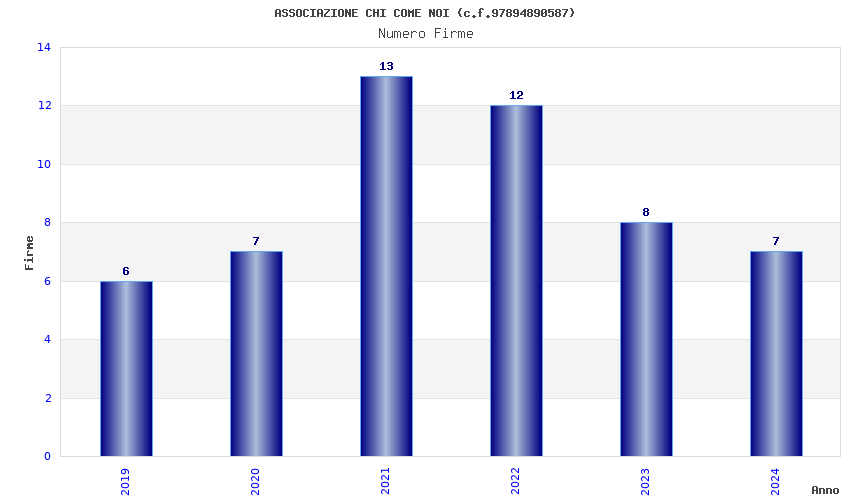 | Anno | Firme | Importi | Media | Naz. | Reg. | Prov. | Comu. |