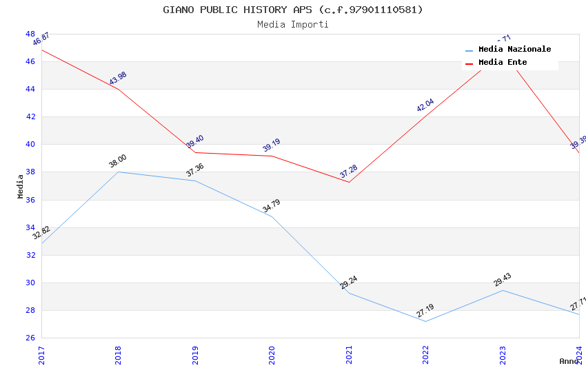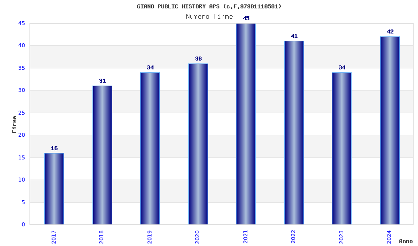 | Anno | Firme | Importi | Media | Naz. | Reg. | Prov. | Comu. |