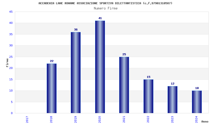 | Anno | Firme | Importi | Media | Naz. | Reg. | Prov. | Comu. |