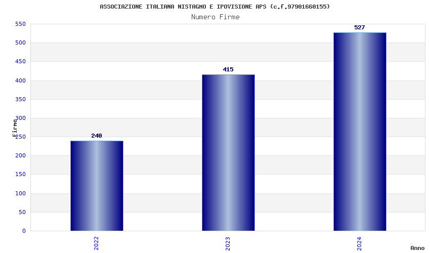 | Anno | Firme | Importi | Media | Naz. | Reg. | Prov. | Comu. |