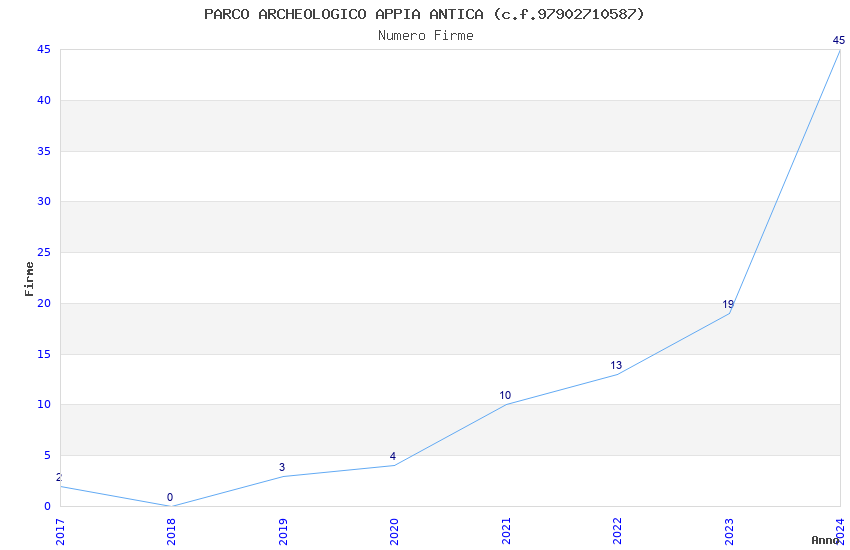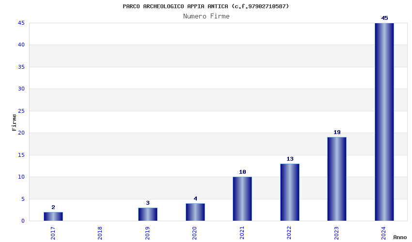 | Anno | Firme | Importi | Media | Naz. | Reg. | Prov. | Comu. |