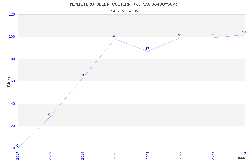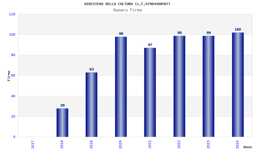 | Anno | Firme | Importi | Media | Naz. | Reg. | Prov. | Comu. |