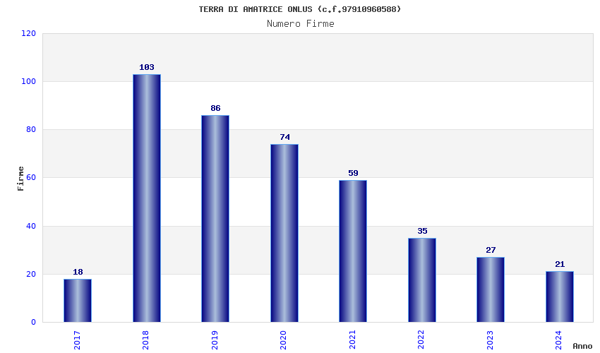 | Anno | Firme | Importi | Media | Naz. | Reg. | Prov. | Comu. |