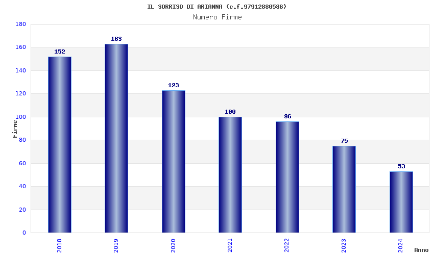 | Anno | Firme | Importi | Media | Naz. | Reg. | Prov. | Comu. |