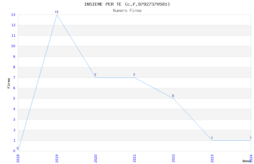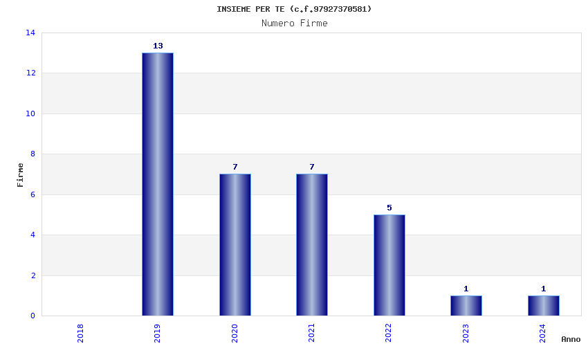 | Anno | Firme | Importi | Media | Naz. | Reg. | Prov. | Comu. |
