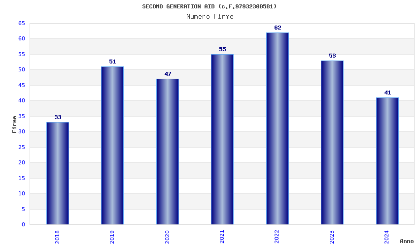 | Anno | Firme | Importi | Media | Naz. | Reg. | Prov. | Comu. |