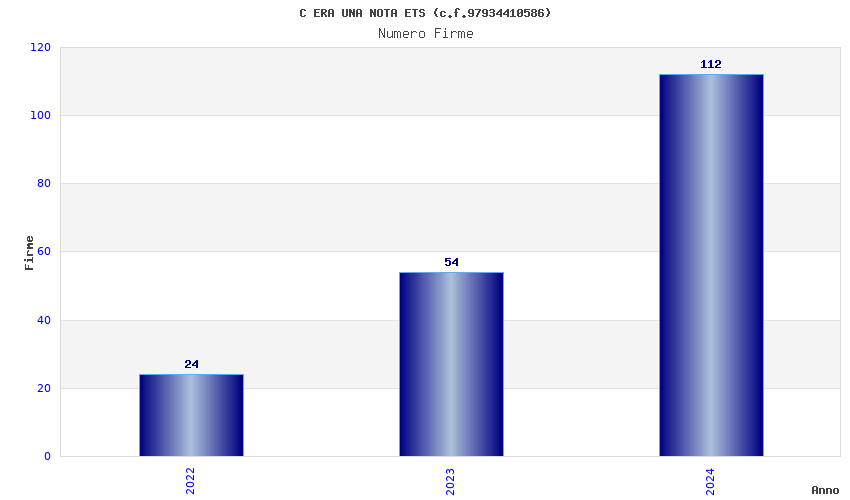 | Anno | Firme | Importi | Media | Naz. | Reg. | Prov. | Comu. |