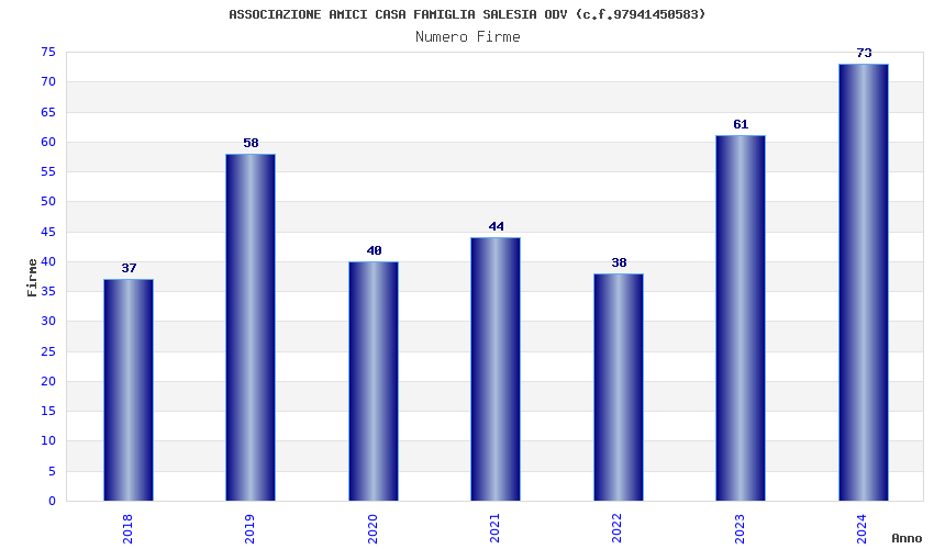 | Anno | Firme | Importi | Media | Naz. | Reg. | Prov. | Comu. |