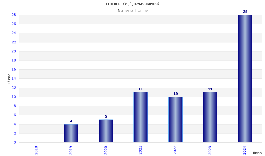 | Anno | Firme | Importi | Media | Naz. | Reg. | Prov. | Comu. |