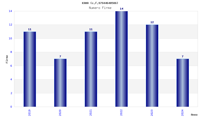 | Anno | Firme | Importi | Media | Naz. | Reg. | Prov. | Comu. |