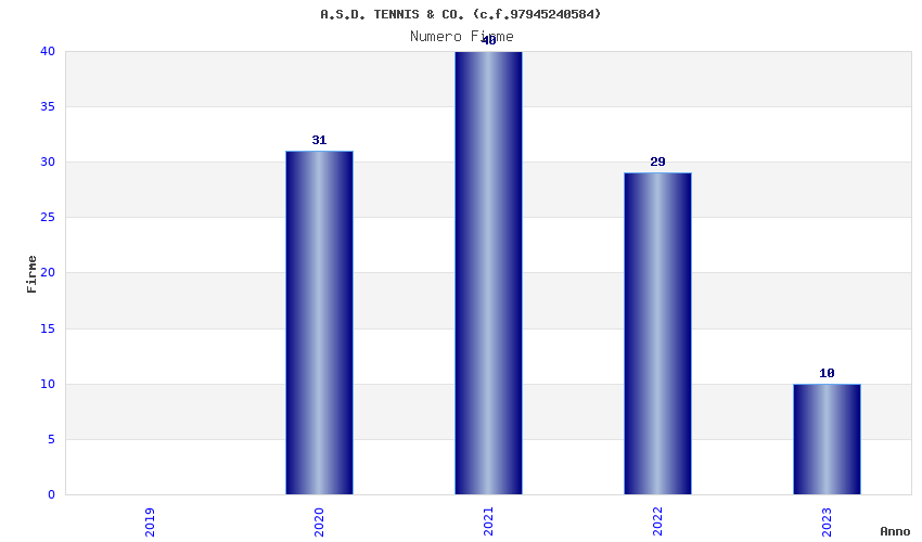| Anno | Firme | Importi | Media | Naz. | Reg. | Prov. | Comu. |
