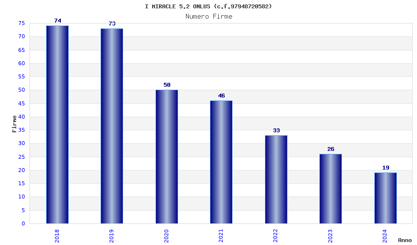 | Anno | Firme | Importi | Media | Naz. | Reg. | Prov. | Comu. |