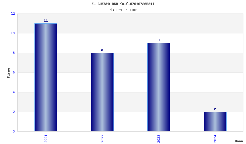 | Anno | Firme | Importi | Media | Naz. | Reg. | Prov. | Comu. |