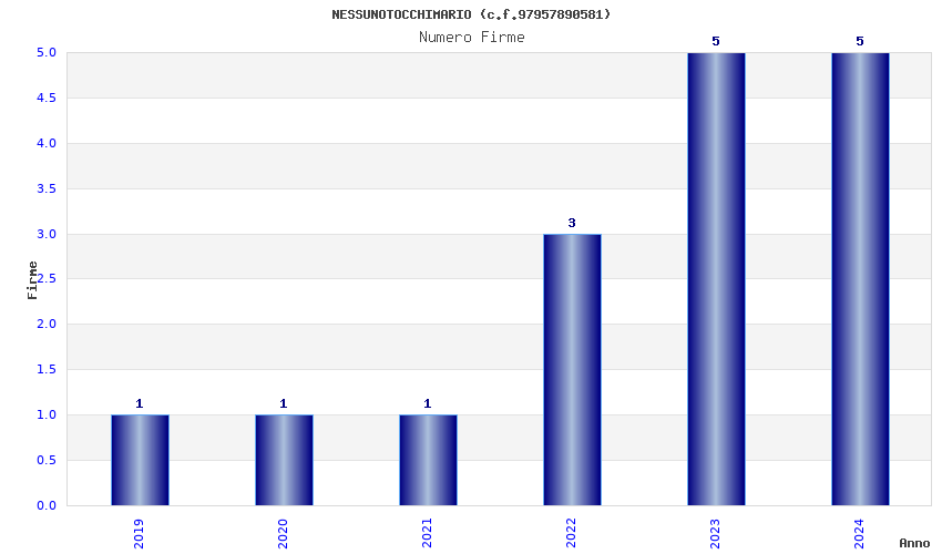 | Anno | Firme | Importi | Media | Naz. | Reg. | Prov. | Comu. |