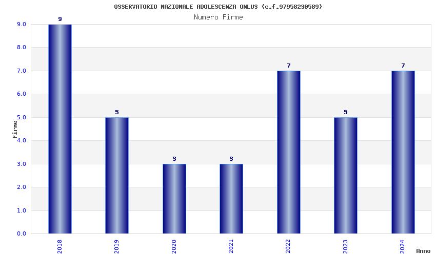 | Anno | Firme | Importi | Media | Naz. | Reg. | Prov. | Comu. |