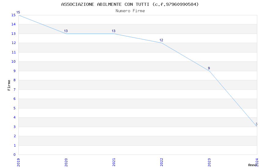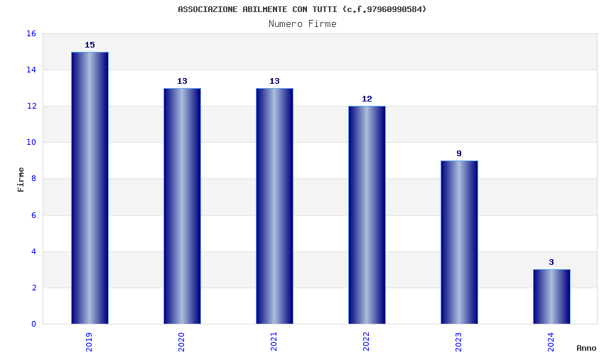 | Anno | Firme | Importi | Media | Naz. | Reg. | Prov. | Comu. |