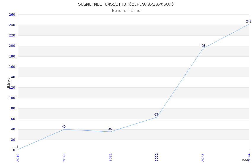 | Anno | Firme | Importi | Media | Naz. | Reg. | Prov. | Comu. |
