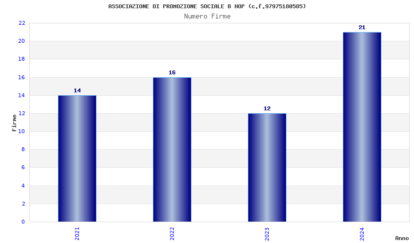 | Anno | Firme | Importi | Media | Naz. | Reg. | Prov. | Comu. |