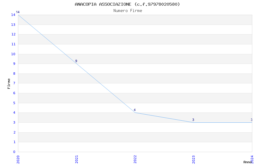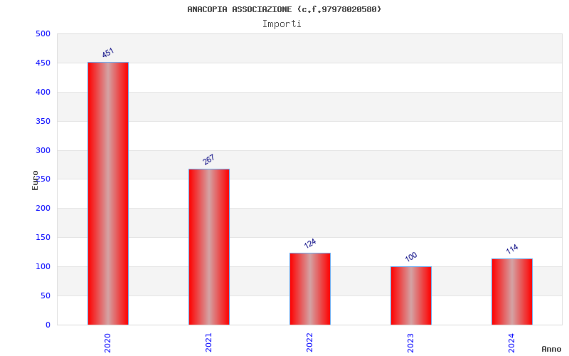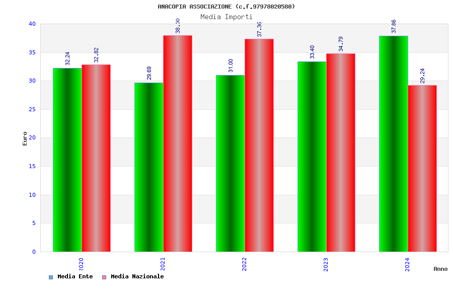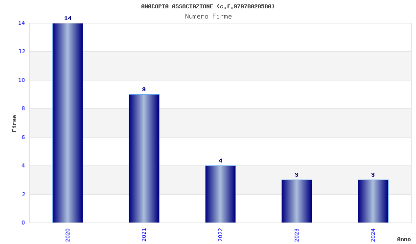 | Anno | Firme | Importi | Media | Naz. | Reg. | Prov. | Comu. |
