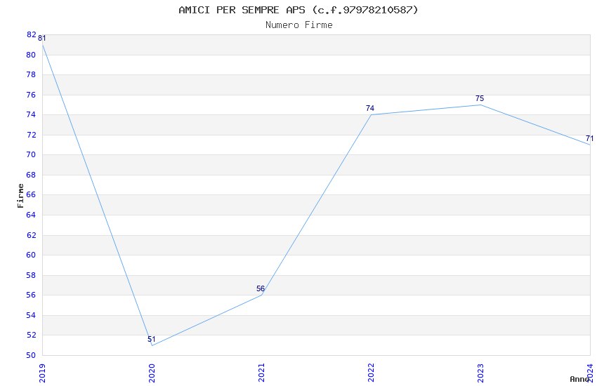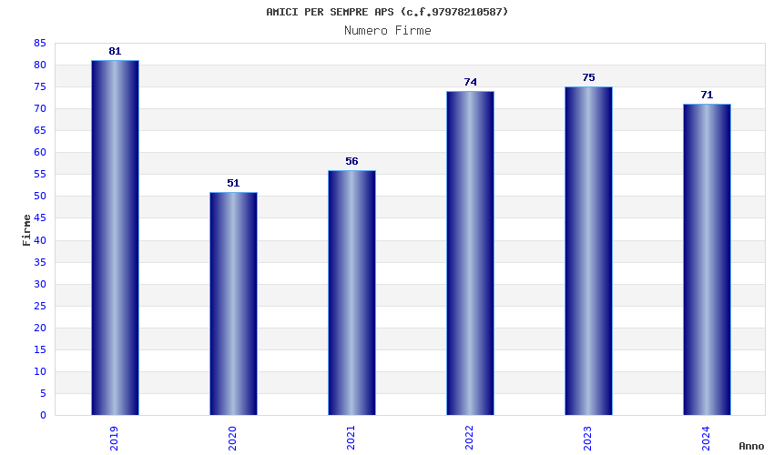 | Anno | Firme | Importi | Media | Naz. | Reg. | Prov. | Comu. |