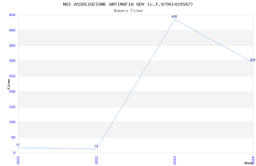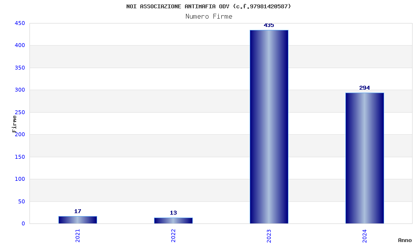 | Anno | Firme | Importi | Media | Naz. | Reg. | Prov. | Comu. |