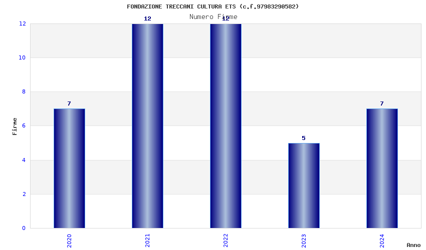 | Anno | Firme | Importi | Media | Naz. | Reg. | Prov. | Comu. |