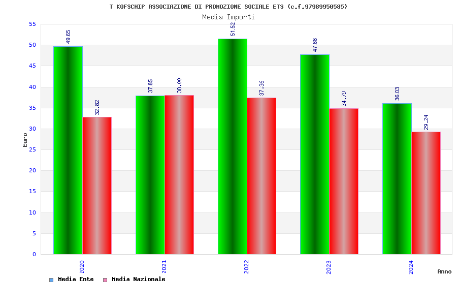 | Anno | Firme | Importi | Media | Naz. | Reg. | Prov. | Comu. |